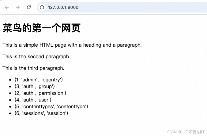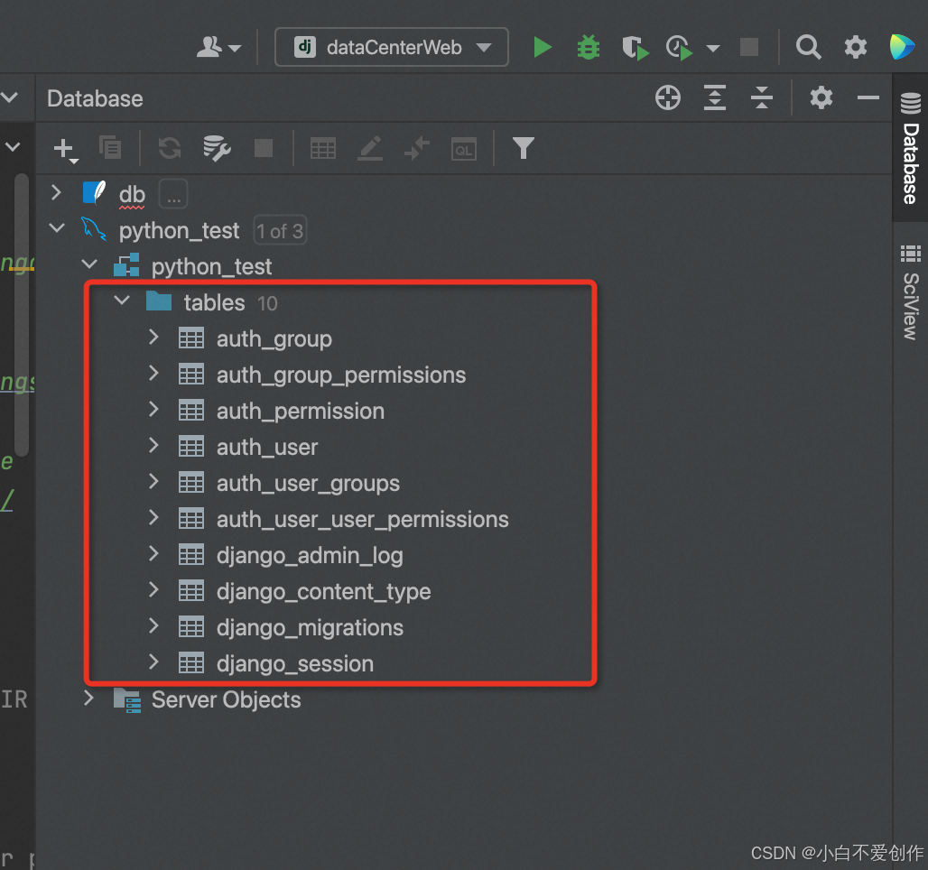 配置好数据库连接以后在控制台执行数据库迁移命令python manage.py migrate,会将Django 自带的 Admin 后台管理功能、Auth 用户认证功能以及会话机制等功能使用到的数据表创建至配置的mysql数据库: