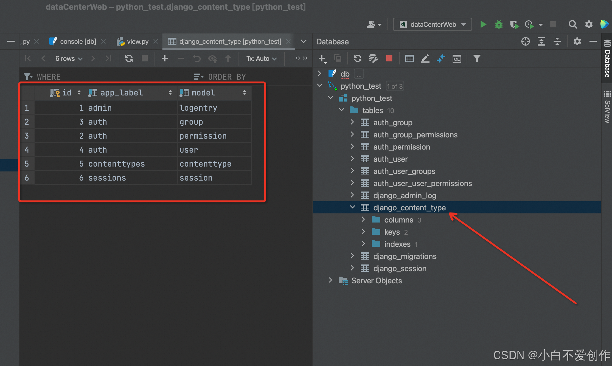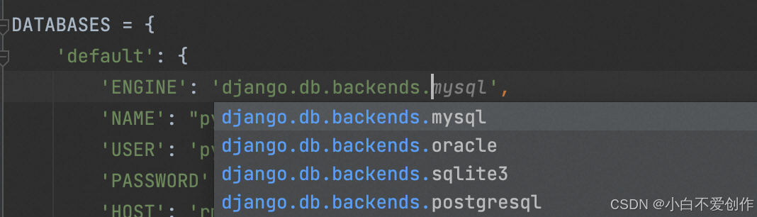 需要配置settings.py文件,此处配置了多个连接,默认的为mysql,使用的驱动引擎为django.db.backends.mysql,可以根据自己需要配置不同类型的数据库