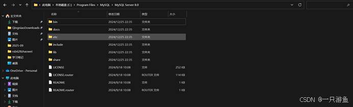 找到mysql的安装目录:(一般默认在C:\Program Files\MySQL\MySQL Server 8.0)