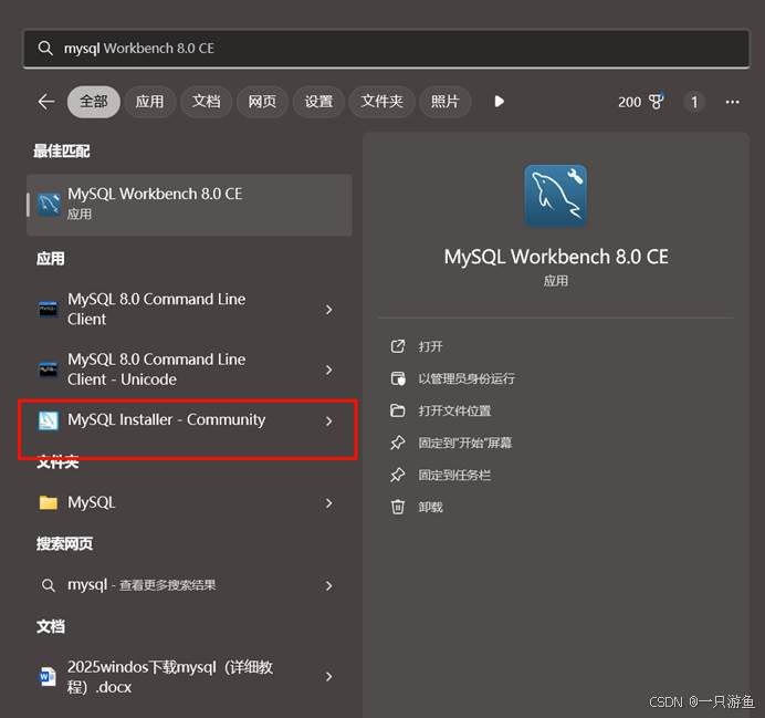 当以前的MySQL没有删除干净现在再删除时,会安装失败,,这里我们可以有mysql自带的工具删除: