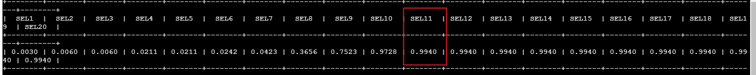 当看到长度为11时,比值不再明显增加,不极致追求1,选择长度11为最佳长度。
