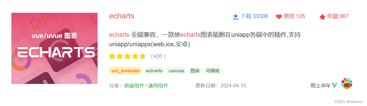 原生Echarts无法在小程序端使用,需要去DCloud插件市场下载echarts。