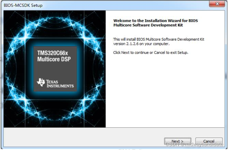 (2.1)双击MCSDK主体文件1 bios_mcsdk_02_01_02_06_setupwin32.exe ,弹出对话框。点击NEXT。