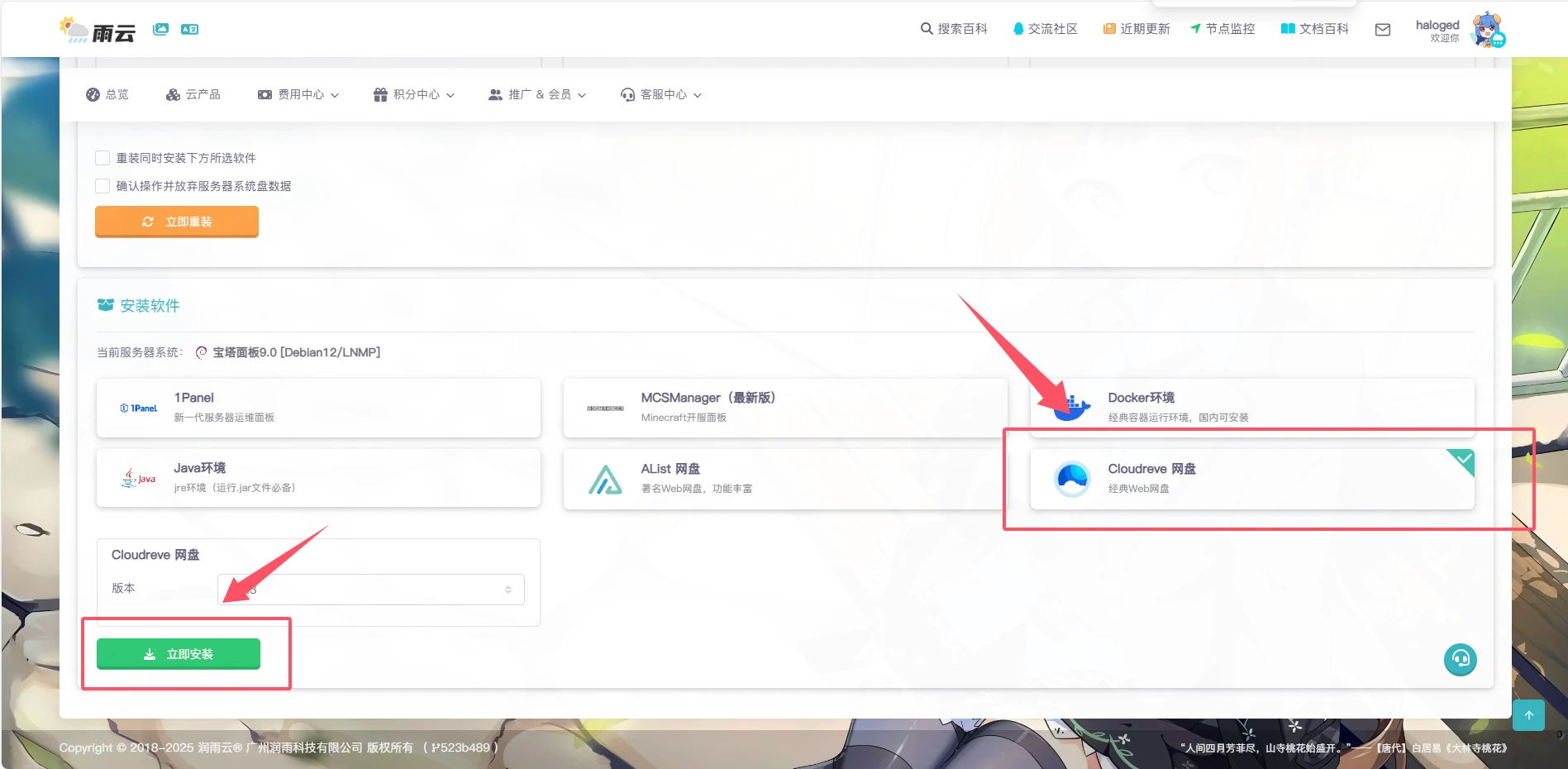 在安装软件中找到Cloudreve,点击安装,等待安装完成。