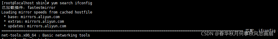 通过yum search ifconfig 这个命令我们发现ifconfig这个命令是在net-tools.x86_64这个包里,接下来只要yum install net-tools.x86_64安装这个包就行了