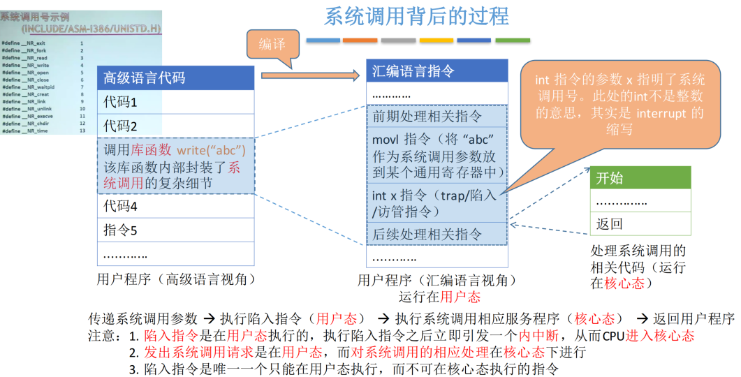 | 编程语 | 向上提供库函数。有时会将系统调用封装成库函数,以隐藏系统调用的一些细节,使系统调用更加方便。 |