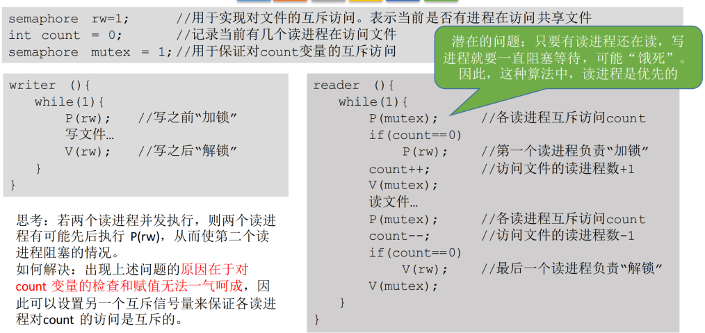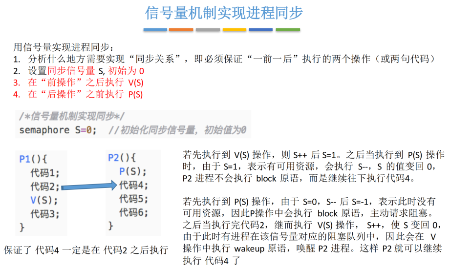 3.信号量的使用不当也会造成死锁。如生产者·消费者问题中,如果实现互斥的p操作在实现同步的p操作之前,就有可能导致死锁。(可以把互斥信号量、同步信号量也看做是一种抽象的系统资源)