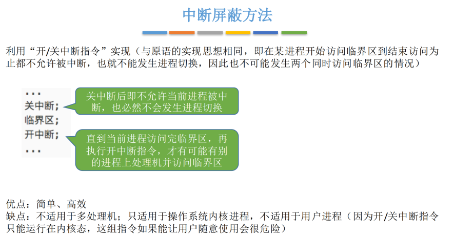 - 当中断发生后,当前运行的进程暂停运行,并由操作系统内核对中断进行处理
