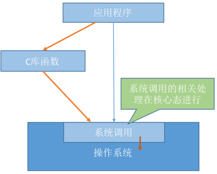 | 普通应用程序 | 可直接进行系统调用,也可使用库函数。有的库函数涉及系统调用,有的不涉及 |