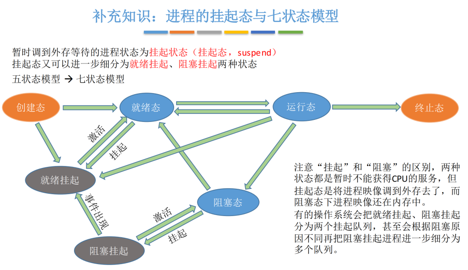 进程是程序的一次执行。在这个执行过程中,有时进程正在被CPU处理,有时又需要等待cpu服务,可见,进程的状态是会有各种变化。为了方便对各个进程的管理,操作系统需要将进程合理地划分为几种状态。