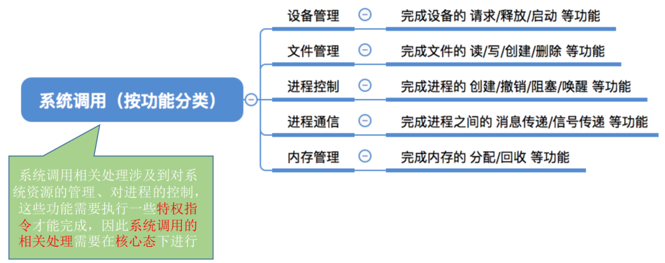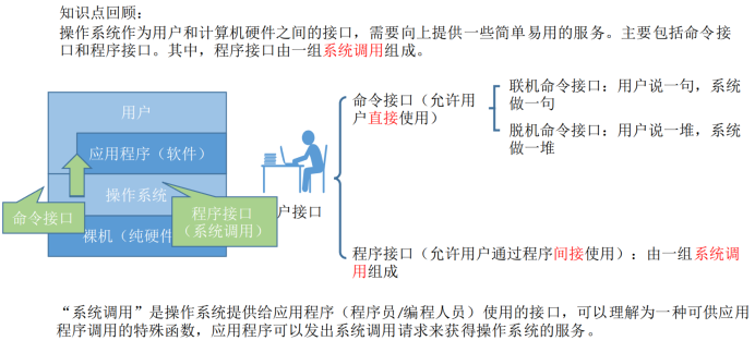应用程序通过系统调用请求操作系统的服务。系统中的各种共享资源都由操作系统统一掌管,因此在用户程序中,凡是与资源有关的操作(如存储分配、《/0操作、文件管理等),都必须通过系统调用的方式向操作系统提出服务请求,由操作系统代为完成。这样可以保证系统的稳定性和安全性,防止用户进行非法操作。