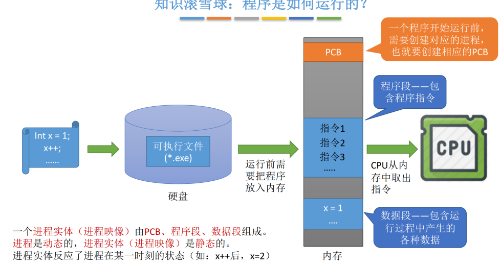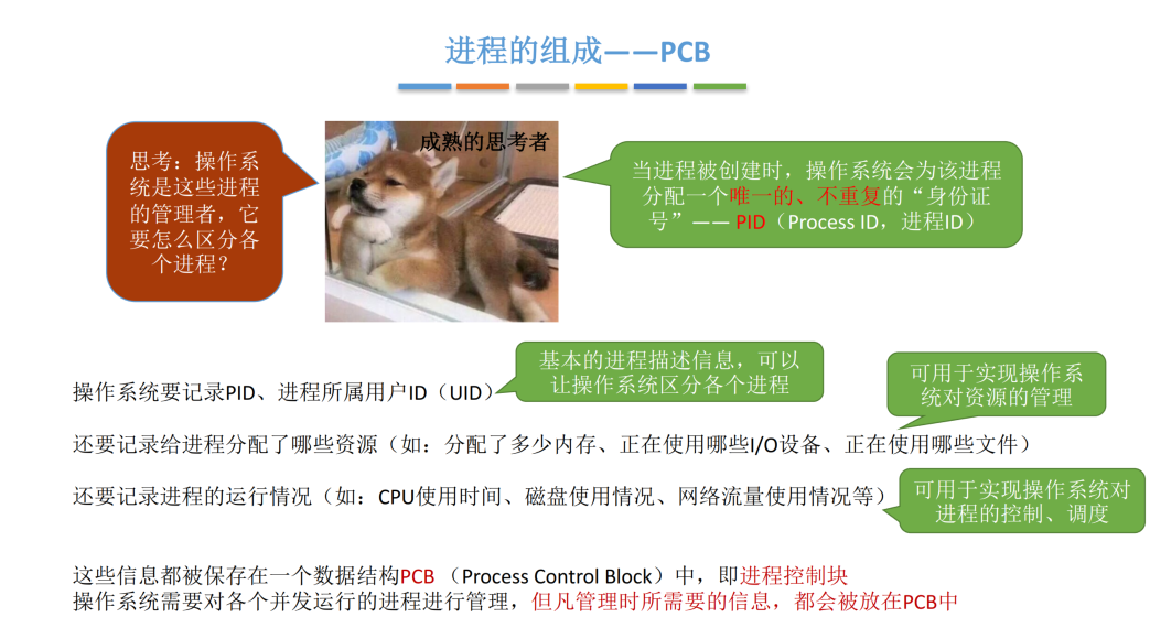 - ①PCB:操作系统通过PCB来管理进程,因此PCB应该包含操作系统对其进行管理所需的各种信息
