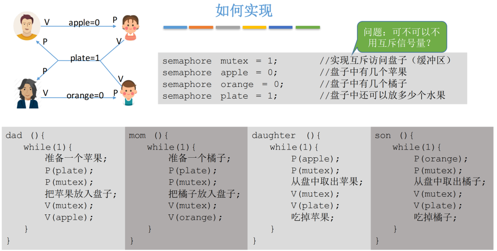 - 互斥条件:只有对必须互斥使用的资源的争抢才会导致死锁(如哲学家的筷子、打印机设备)。