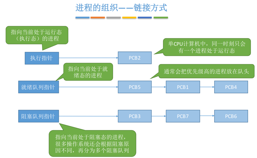 注:进程的组成讨论的是一个进程内部由哪些部分构成的问题,而进程的组织讨论的是多个进程之间的组织方式问题