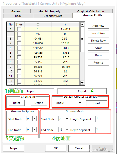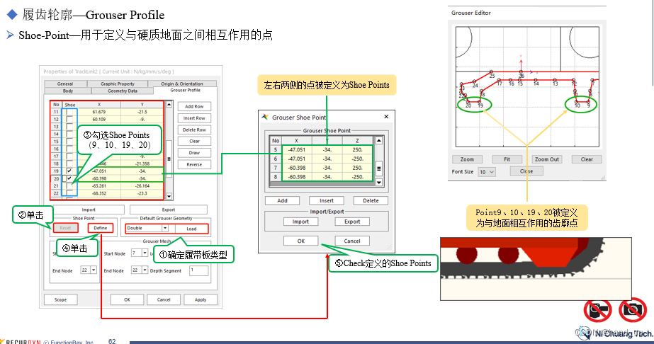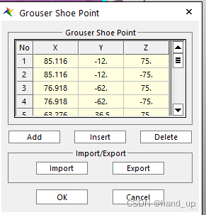 1.Shoe Point鞋点: 鞋点用于定义履带齿和硬地面之间的相互作用。这些点是通过在表格的第一列前打勾进行选择。