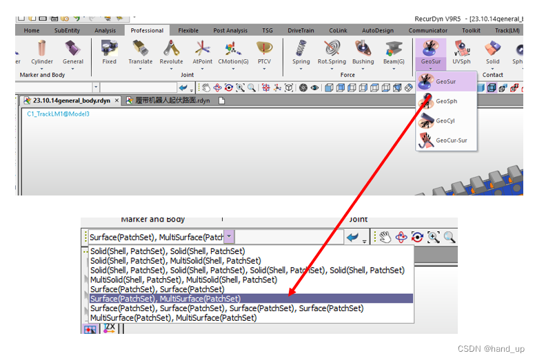 本文详细介绍了在Recurdyn中处理履带模型时遇到的各种问题,包括履带装配错误、接触问题、车辆跑偏、仿真速度慢等,并提供了相应的解决思路和官方建议。涉及关键步骤如履带链节与链轮啮合、接触参数调整、Bushing Force设置、地面性质修改等。