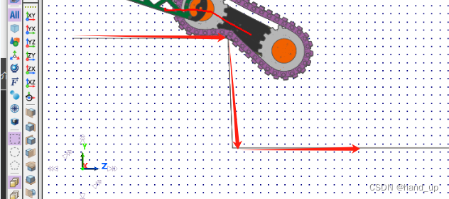 通常,仅仅通过第一步,不能完全让轮齿和链节不重合。接着,我们可以使用平移功能来移动link shoe。让link与链轮的分开,因为link shoe通过bushing force连接,一旦仿真开始,link shoe将移回其初始位置。但通过这种方式,可以避免初始穿透。