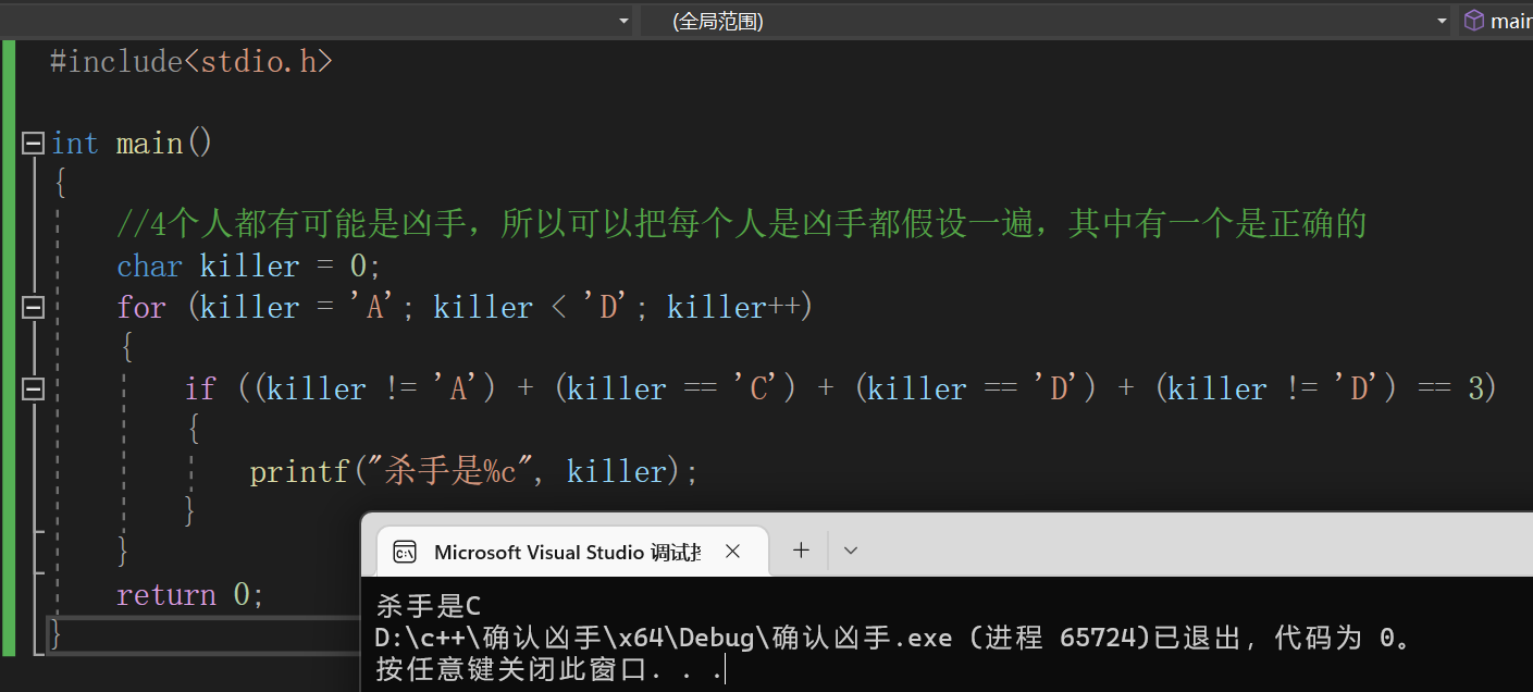 //4个人都有可能是凶手,所以可以把每个人是凶手都假设一遍,其中有一个是正确的