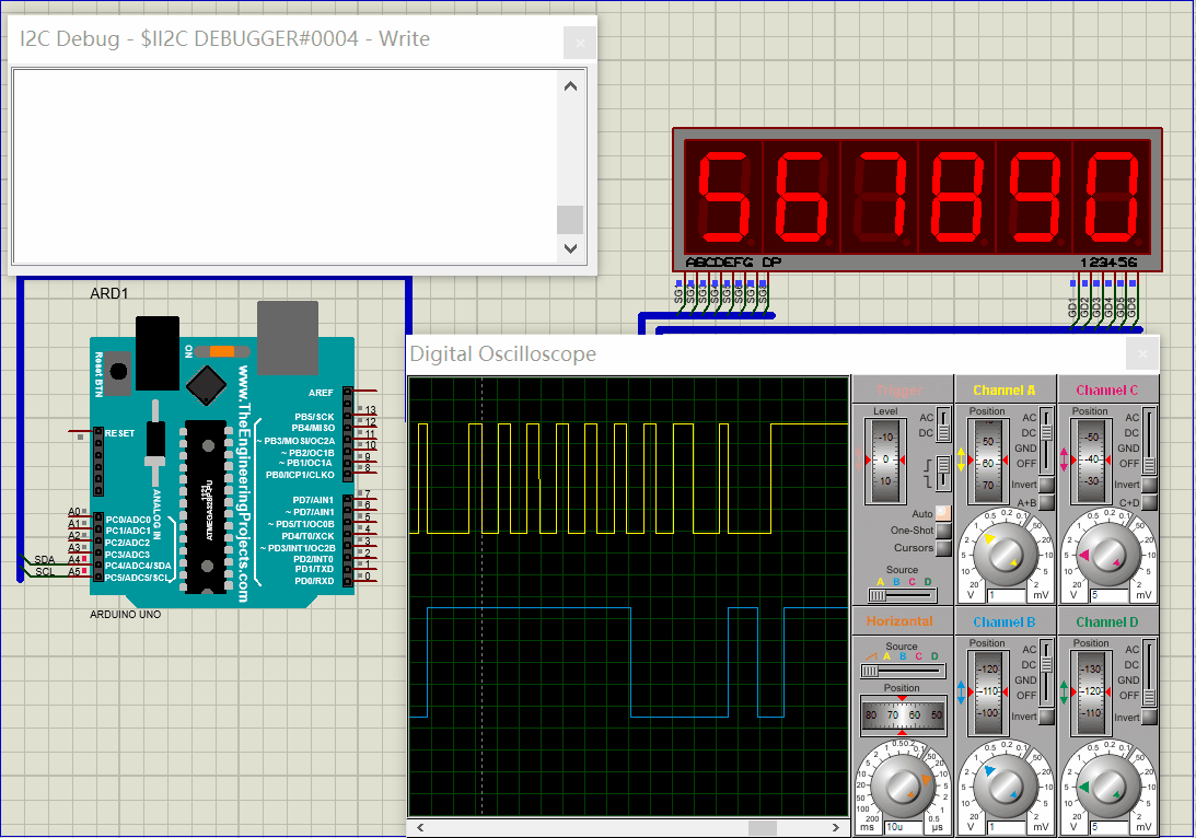 本文探讨TM1637与TM1650芯片如何以非标准方式使用I2C通信,重点在于其倒序的位号和缺失的设备地址。通过分析datasheet和示波器波形,揭示了TM16xx的特殊之处,以及如何在Proteus环境中进行仿真和软件架构训练。同时,介绍了如何在Arduino环境下修改库以支持6位数码管显示。