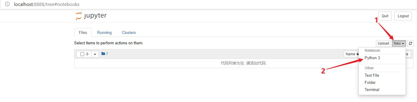 (1) 在 Windows PowerShell 里输入命令 jupyter notebook 打开 jupyter 网页,然后新建 Python3 文件,如下图: