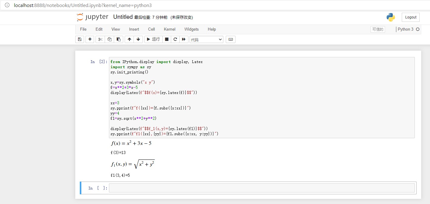 2、基本使用:在 jupyter 里用 python3 输出公式。