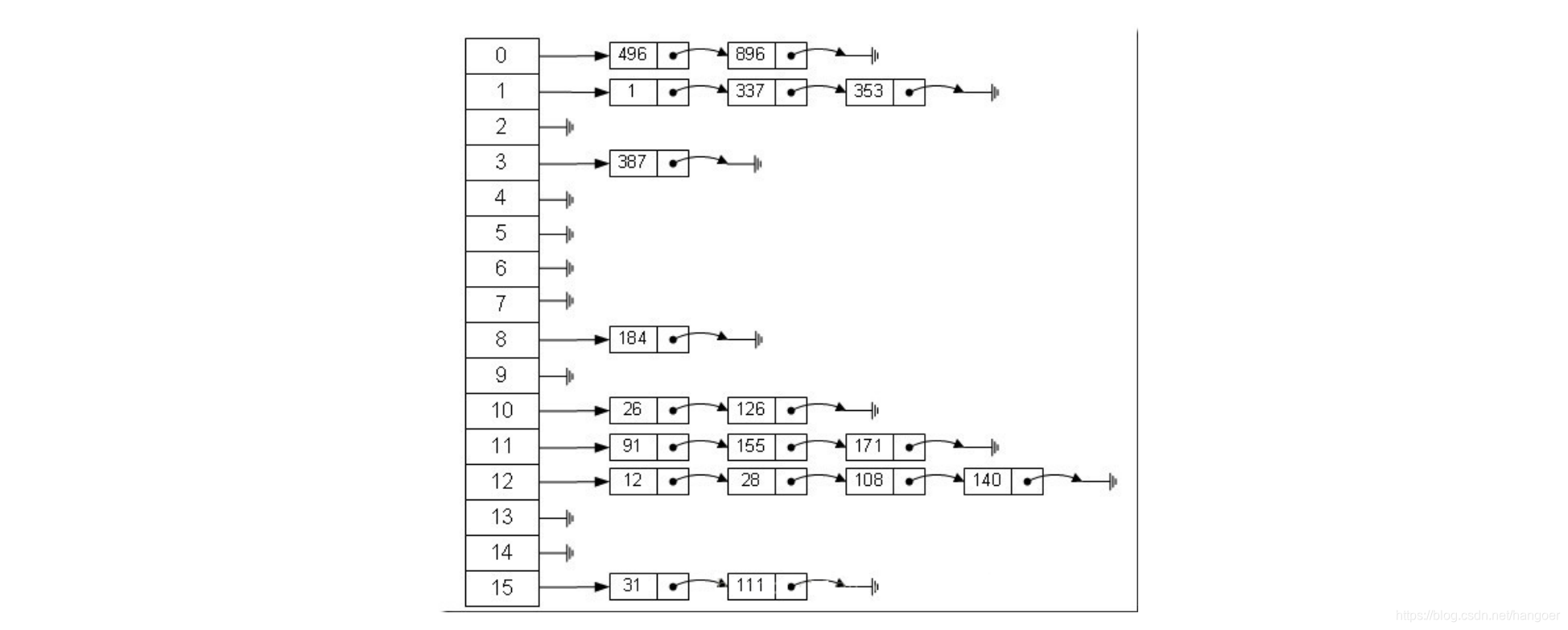 Hash表的组成是”数组+链表”这些元素是按照什么样的规则存储到数组中呢。⼀般情况是通过hash(key)%len获得,也就是元素的key的哈希值对数组⻓度取模得到。