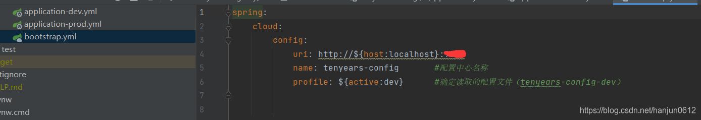 注意ACTIVE='dev',这就是配置文件的测试环境,
