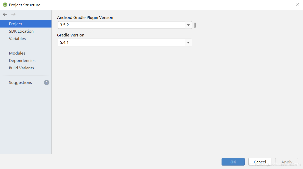 (2)在Android Studio 的 File > Project Structure > Project 菜单中指定插件版本