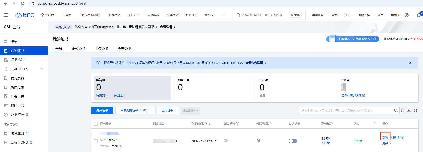 4、ssl证书绑定(腾讯自己得免费的SSL证书可以参考下面的文字)