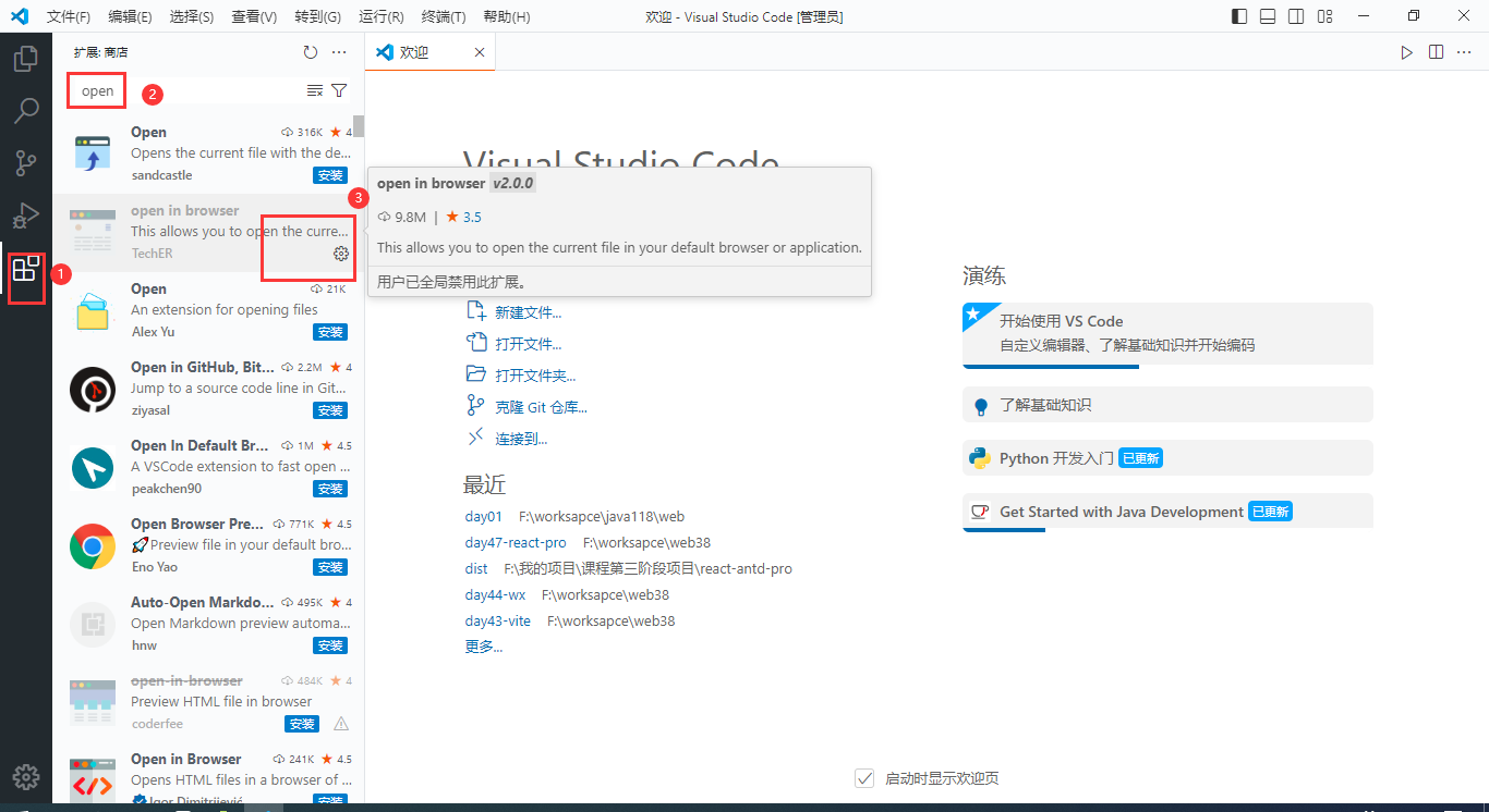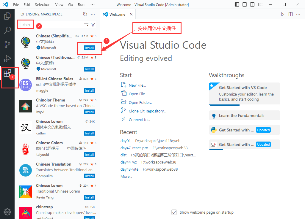 - 安装 简体中文插件:Chinese (Simplified) (简体中文)