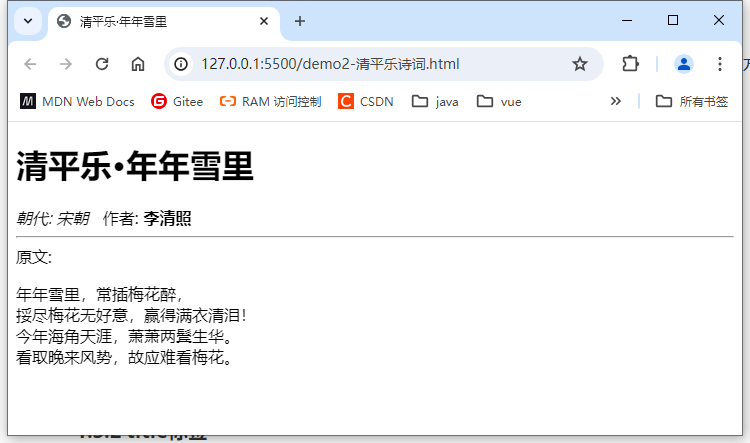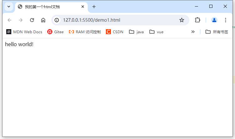 HTML案例1: 以下是 demo1-我的第一个网页.html 文档的内容