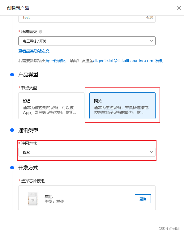 进入所创建的项目后点击创建新产品,重点将产品类型设为网关,通讯类型设为蜂窝网络,其他按照自己的喜好设置。