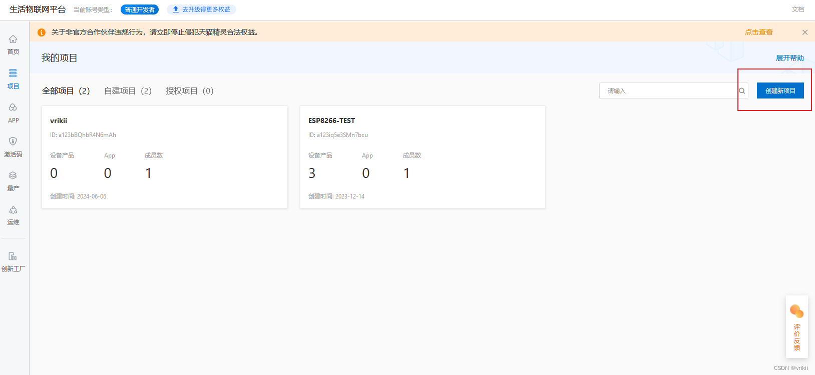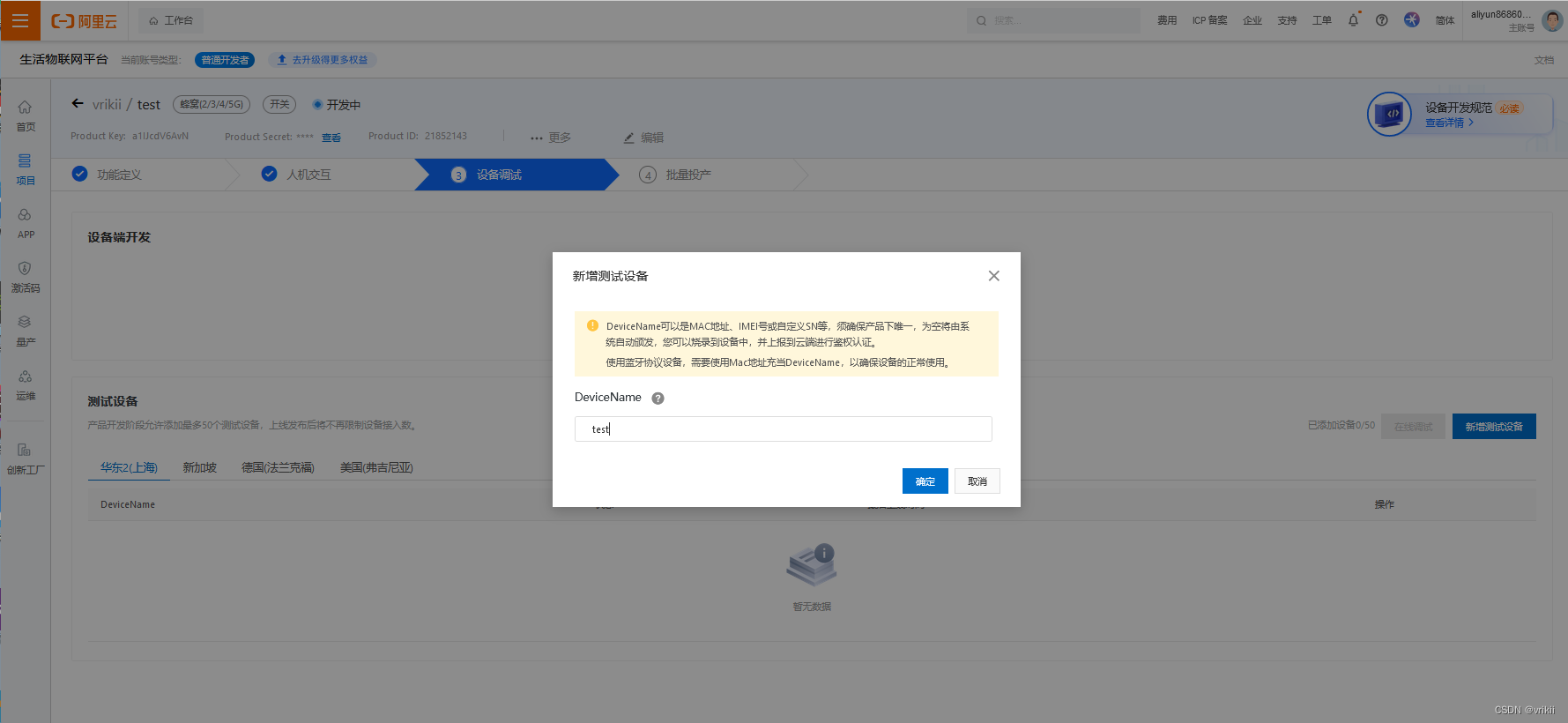 注:注册了阿里云物联网平台之后就无法再注册生活物联网了。