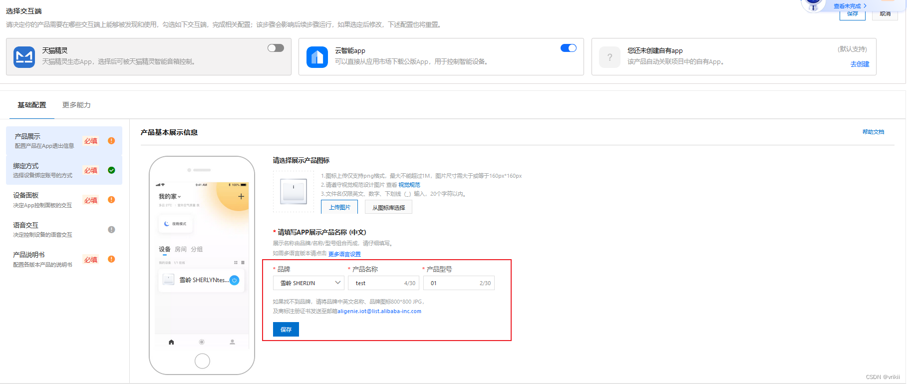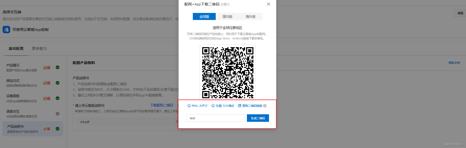 选择下载配网二维码,输入设备名字便能获得二维码,并用云智能app扫描