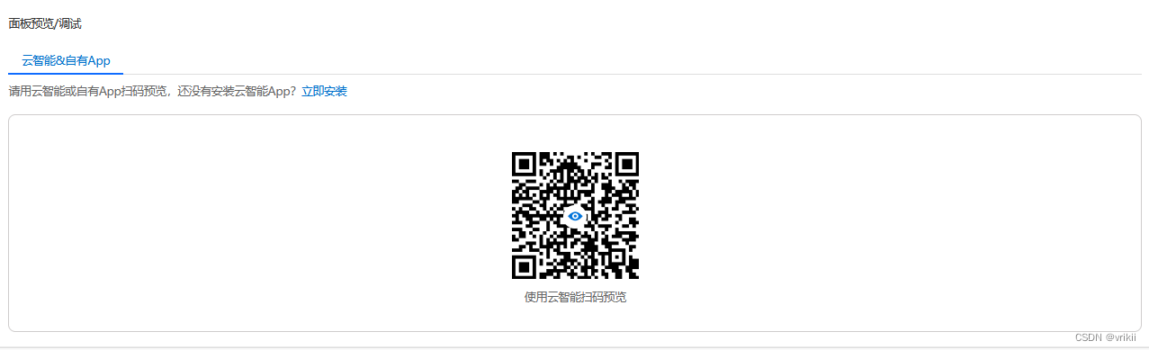 然后用云智能app扫描上面的二维码,便能在app中预览面板