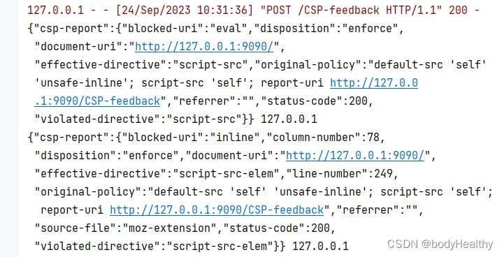 "original-policy":"default-src 'self' 'unsafe-inline'; script-src 'self'; report-uri http://127.0.0.1:9090/CSP-feedback",