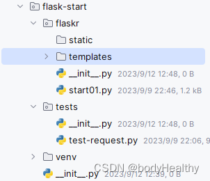 依次创建 flaskr、flaskr/static、flaskr/templates、tests目录: