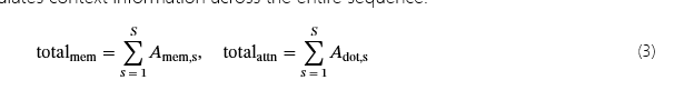 哪里S是 Segment 的总数。这种积累导致内存随着序列长度的线性增长,同时使注意力能够在整个上下文中进行关注。