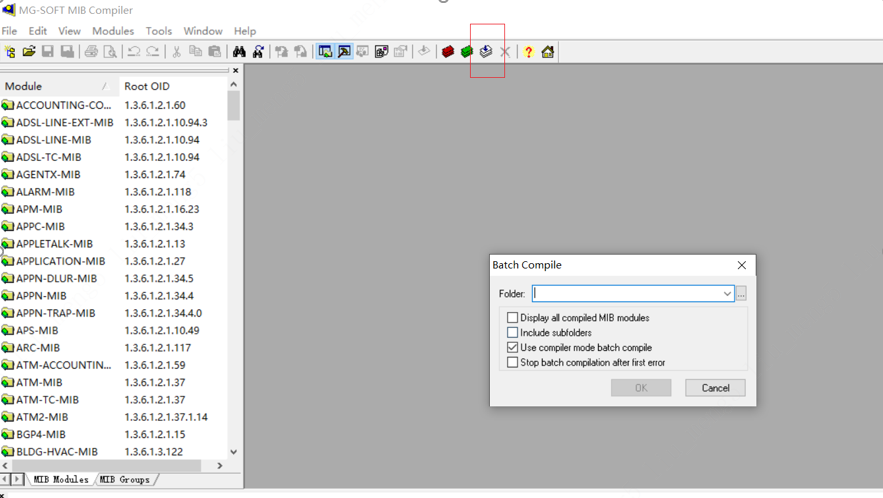 然后点击红框中的按钮,选择mib文件所在路径,进行编译