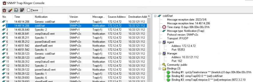1、查mib browser 的trap配置,162端口的状态是否为ready。如果是Down可以换个电脑或者设备更改下端口同时如下工具截图中点击Add添加一个和设备一样的端口直到该端口为Ready。