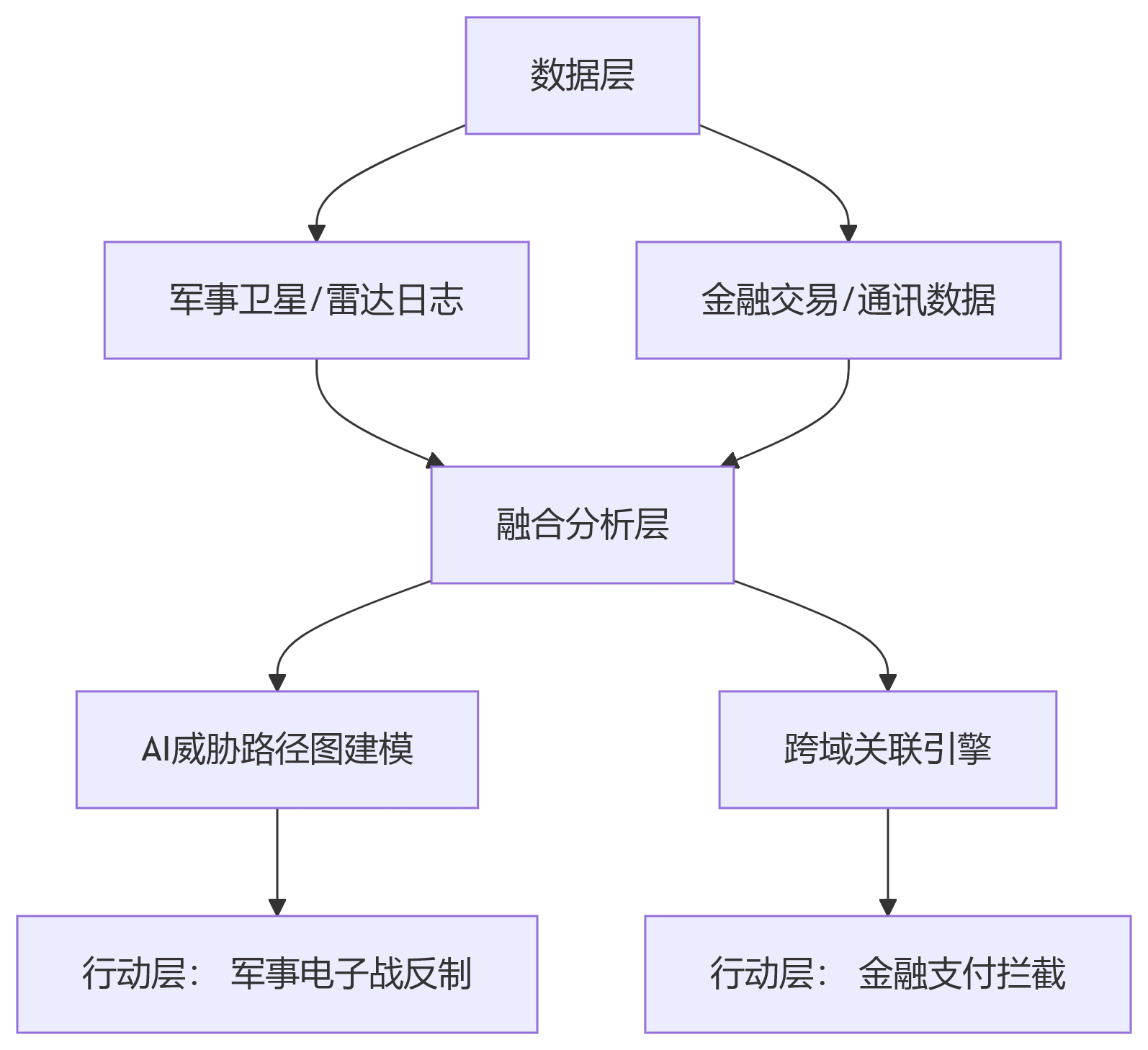 军事威胁情报(如俄军GPS干扰模式)可预警金融关键基础设施风险(支付系统瘫痪);金融反诈的AI模型(如涉诈账户秒级识别)可提升军事目标甄别效率107。