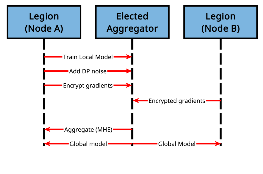 为了实现这些目标,LegionITS集成了先进的密码学和隐私保护技术,包括MHE、DP、ZKP、加密匿名化威胁情报以及带有取证证据的保护性审计日志。这些技术确保了威胁情报的安全交换,同时保护了隐私,为联邦网络安全的协作建立了一个强大的框架。