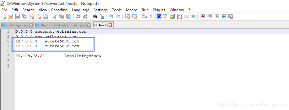 - eureka6001.com 这玩意其实就是localhost,是自己电脑上配的,你要懒得配可以自己改成127.0.0.1。
