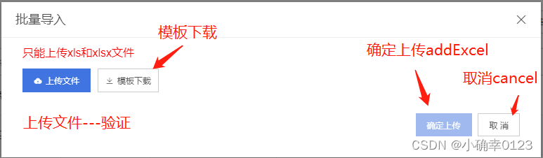 2.弹窗中有 模板下载 文件上传两个按钮