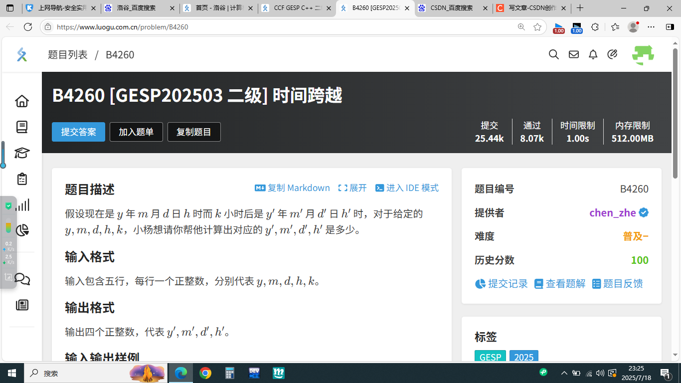 B4260 [GESP202503 二级] 时间跨越 - 洛谷