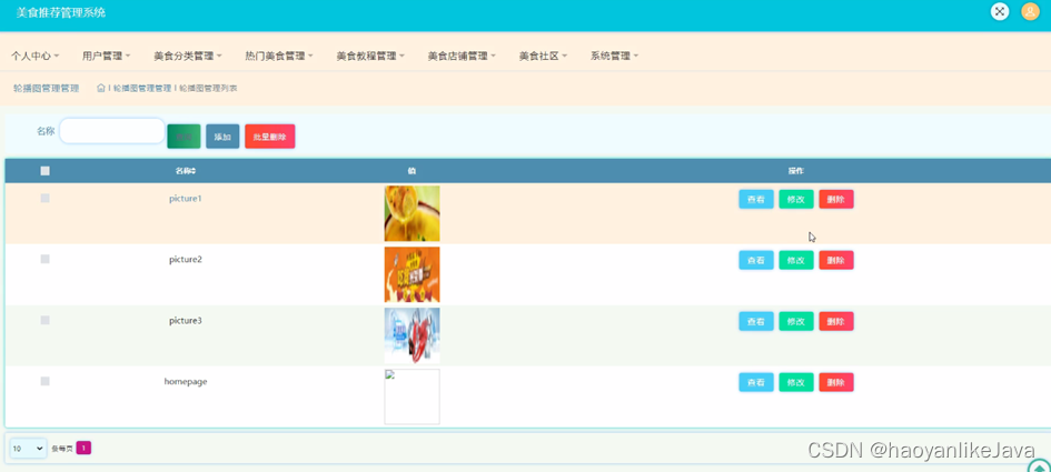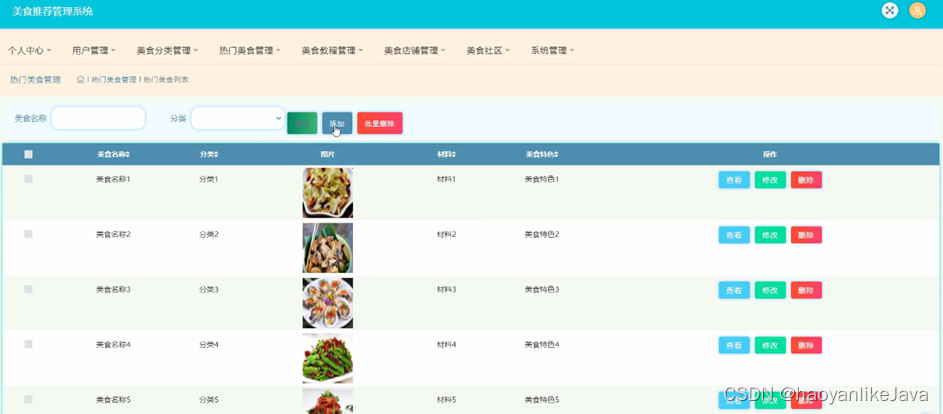 图5-10热门美食管理界面图