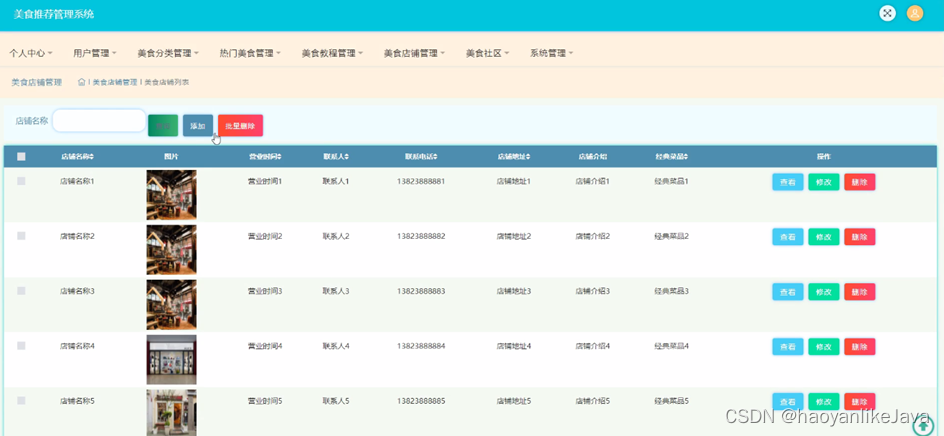 图5-11美食店铺管理界面图