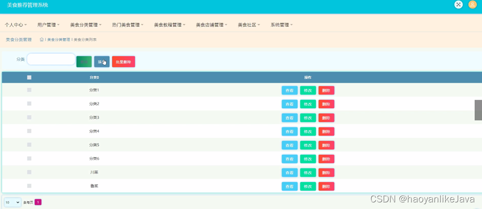 图5-9美食分类管理界面图