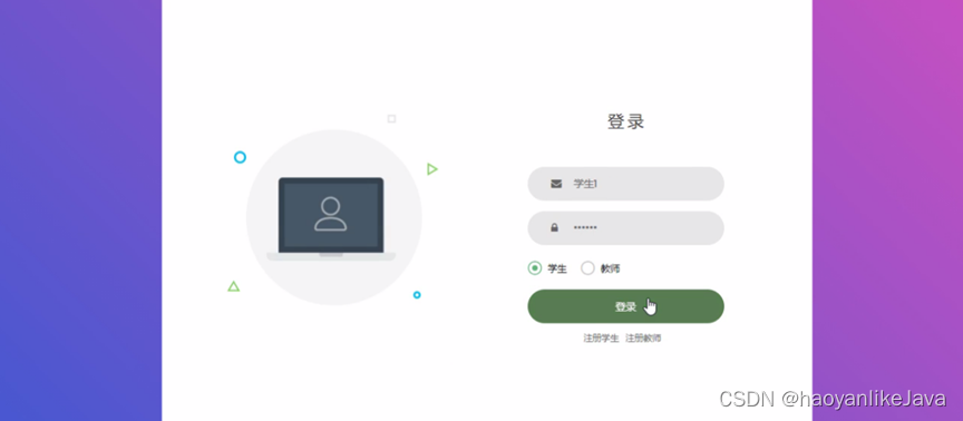 学生登录,在登录页面通过填写账号、密码等信息进行登录,如图5-13所示。